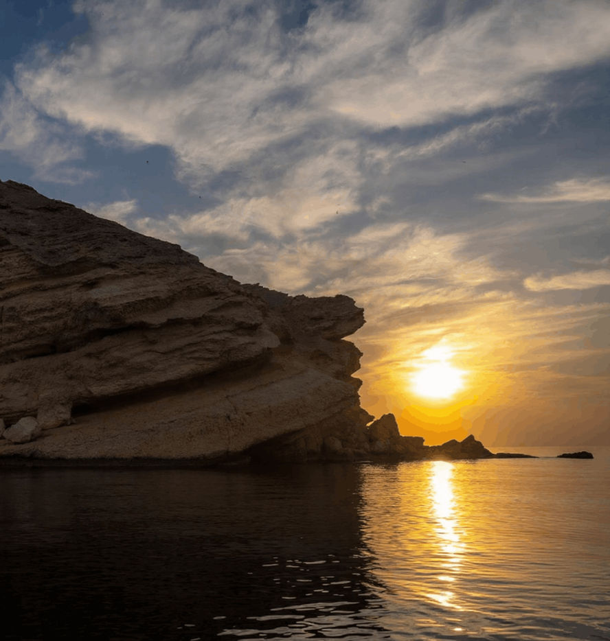 Just off the coast of Muscat lies Al Fahal Island - wild, close, and bathed in golden afternoon light. This half-day escape blends easy adventure with raw beauty: snorkel through coral gardens, hike to panoramic viewpoints, and unwind on a boat ride back under a softening sky.